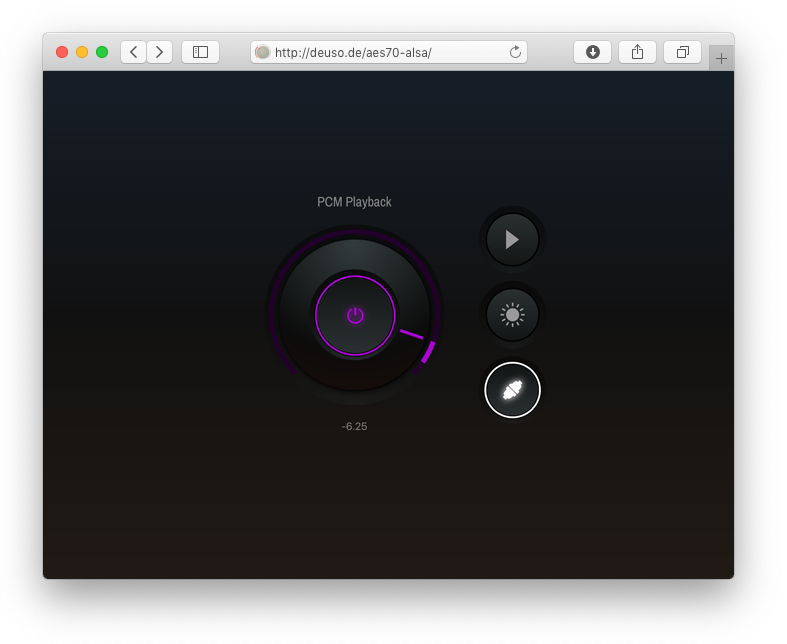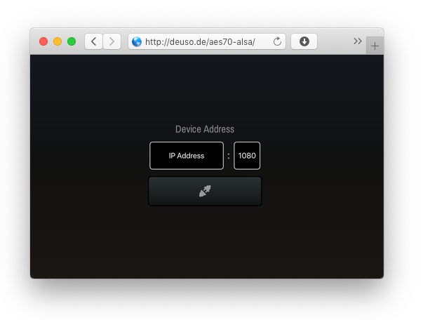 Control ALSA Sound Cards from ‘The Cloud’ The original ALSA Web-based UI is available via a cloud service. When used in conjunction with AES70 Explorer, users can gain insight into the interoperable nature of AES70. Connect your computer, tablet or smartphone to the same network as your Raspberry Pi. In a web browser, navigate to: http://deuso.de/aes70-alsa Enter the IP number of your Raspberry Pi into the form field, then click on the Connect Button. Uninstalling the package sudo apt remove aes70-alsa Footnotes: 1. Advanced Linux Sound Architecture (ALSA) Wikipedia Page